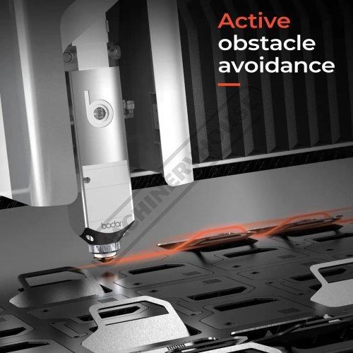 Active obstacle avoidance system - BodorGenius Bodor's intelligent laser head uses sensors and algorithms to detect potential obstacles like tilting parts and automatically avoids a potential collision. It largely ensures the stability as well as operating efficiency in the cutting process.