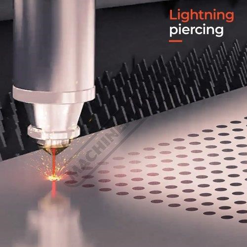 Lightning piercing - The technology offers rapid precise piercing with reduced time. It features monitored processes for efficiency automatic focus adjustment for seamless piercing and integration with Bodor Genius. This enables quick piercing in sync with the cutting head's movement optimizing operations for medium-thick plates without additional time or motion.