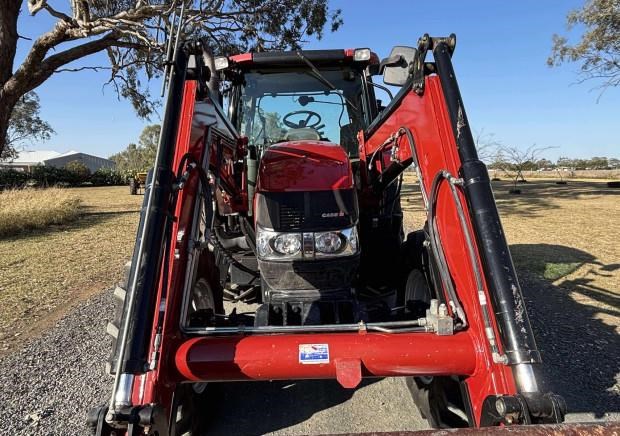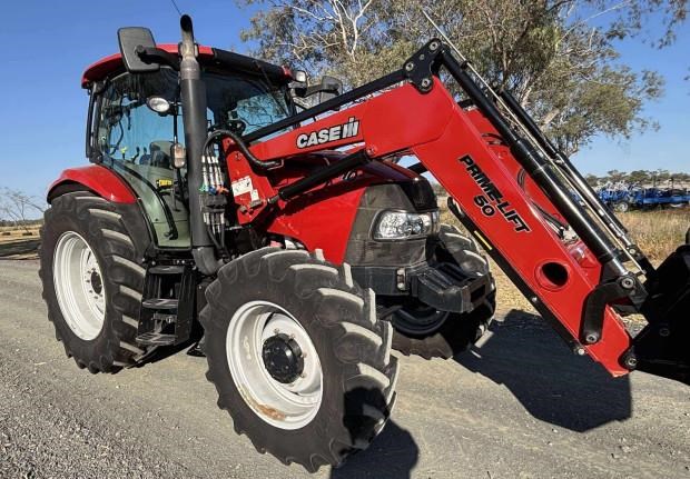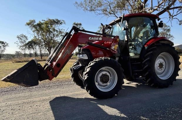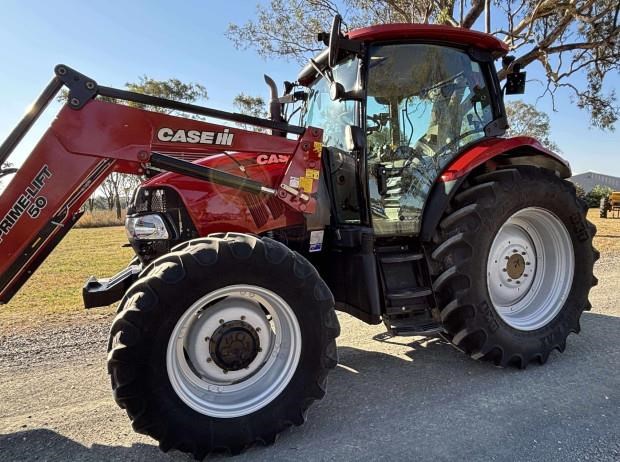 CaseIH Maxxum 110 Tractor and Loader, 2016 model, 110 horsepower, 4374 hours, front axle suspension, 460/85R38 tyres 100% rubber, 380/85R28 tyres 50% rubber, 3 point linkage, PTO, instructional seat, Challenge Prime-Lift 50 Loader, GP bucket, loader joystick, 2 remotes, pallet forks, excellent condition, near Toowoomba QLD, includes GST