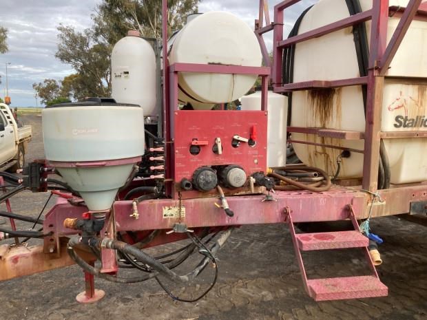 Croplands Stallion Trailer Sprayer, 2000 build, 24m boom, 4000 litre tank, 7 section boom, hypro pump, chemical vat and venturi, 200 litre fresh water tank, airbag boom and axle suspension, hydraulic lift and fold, stainless steel lines, boom suspension re-bushed and new airbags fitted harness for Greenstar rate controller (controller not included), good condition, located near Bongeen Qld, price includes GST