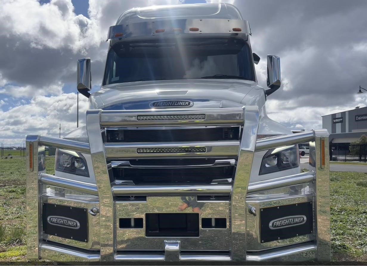 Detroit Assurance 5.0 includes Adaptive Cruise Control, Active Brake Assist, Lane Departure Warning and Side Guard Assist. Multimedia Cockpit, Underbunk Fridge, Black plastic guards, Jost turntable, Driver and passenger Air suspension seats, Bluetooth, walk plate and air and electrics to rear.