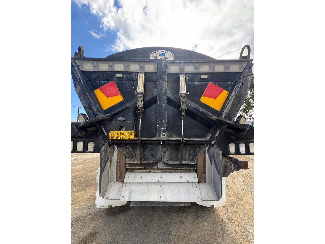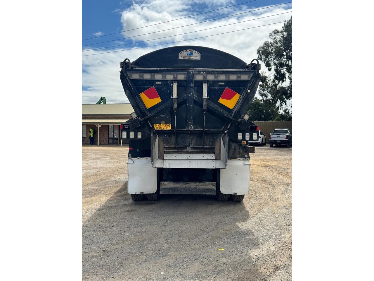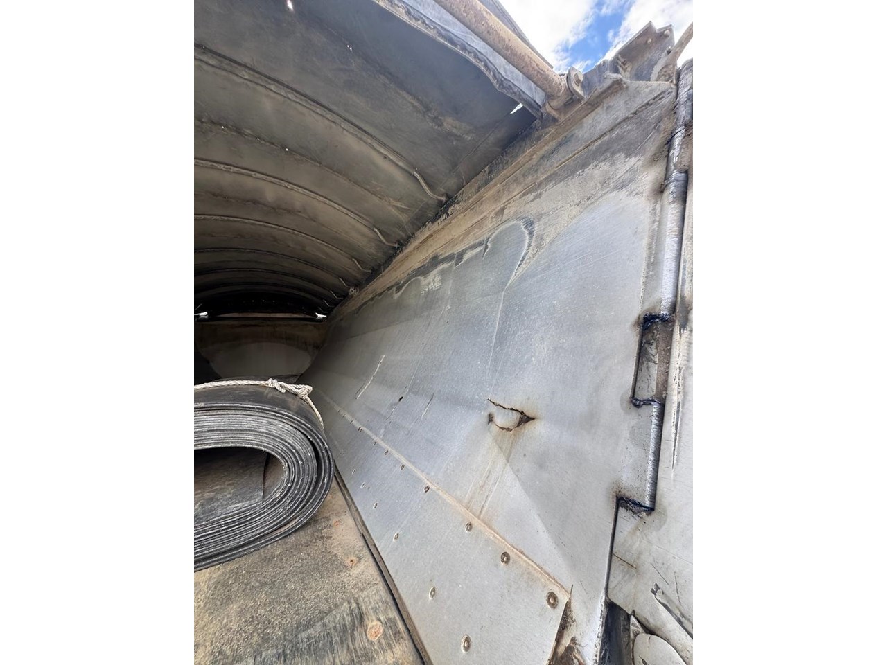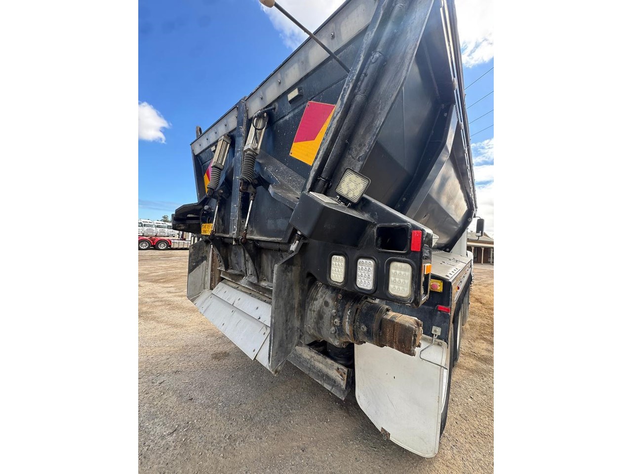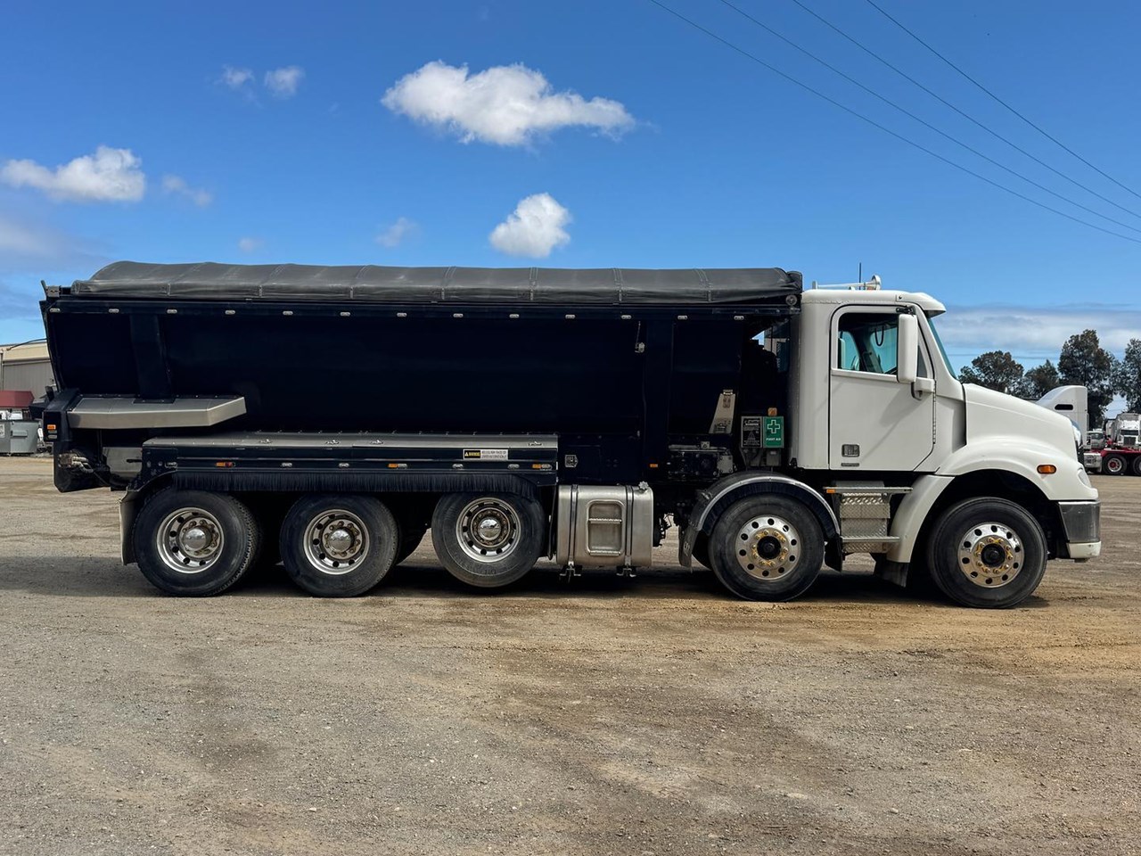 Freightliner CL112 live bottom with remote operation, conveyor belt, electric tarp, and spare parts included. Purpose-built for bulk haulage and civil applications.