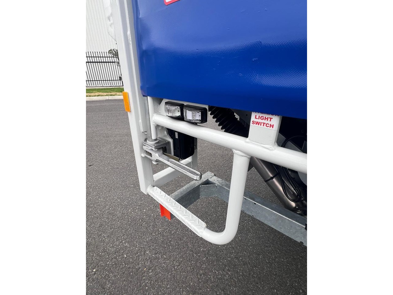 - Curtains: Blue lightning latch curtains for easy and secure loading