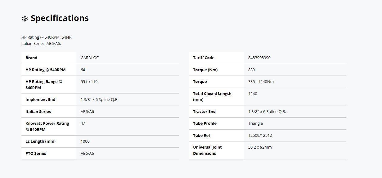 | Title | GARDLOC PTO SHAFT - 1,000MM LZ LENGTH, 1 3/8" X 6 SPLINE Q.R. TO 1 3/8" X 6 SPLINE Q.R. |