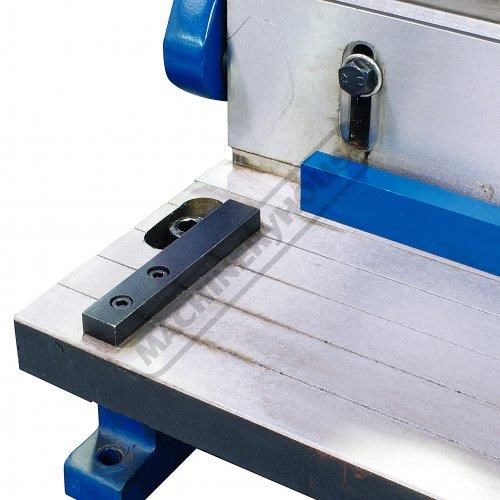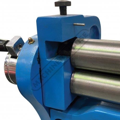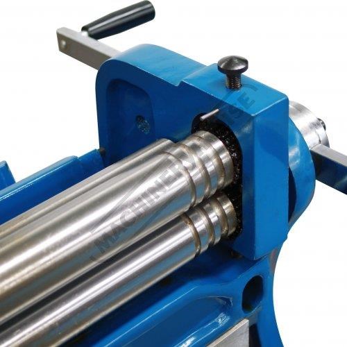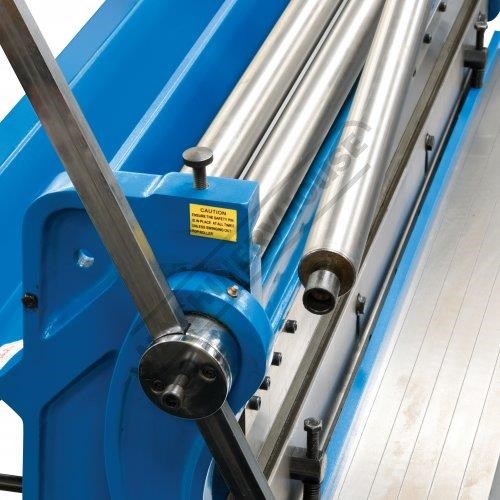A compact three-function sheet metal working machine which will shear, roll and bend thin sheet material up to a maximum width of 1320mm. The handle operates all three functions at the same time, but only one function can be used at one time - the rolls incorporates wiring grooves and are rotated directly whilst the bending and shearing functions operate via an eccentric cam. The pressbrake bending dies can be removed in sections to allow for partial bends to be formed and the top roll can be removed completely when forming closed cylinders. The maximum thickness capacity of 1mm for mild steel & 1.5mm for soft grade aluminium, This compact machine is perfect on small jobs and low production runs for the home engineer's workshop.