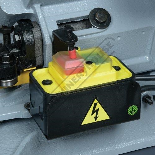 This economically priced metal cutting band saw incorporates a wide and robust four-legged stand cross braced with four leg supports for additional stability when cutting longer and heavier material. The ball bearing guided blade can be driven at a choice of three speeds via a reduction gearbox, depending on the type of material being cut and there is an automatic cut-off, adjustable for height, for stopping the motor when the cut is complete.