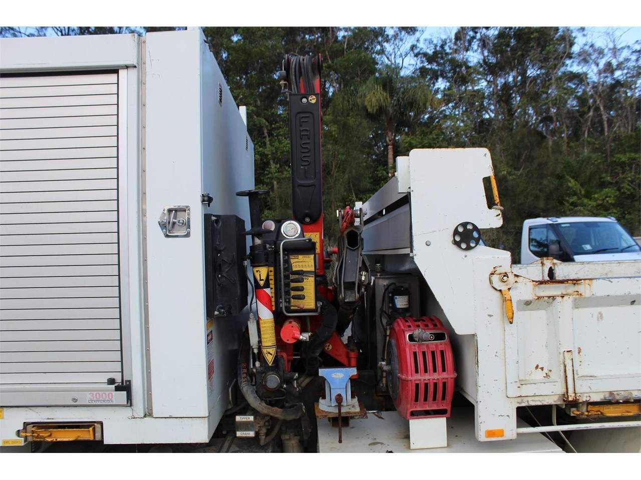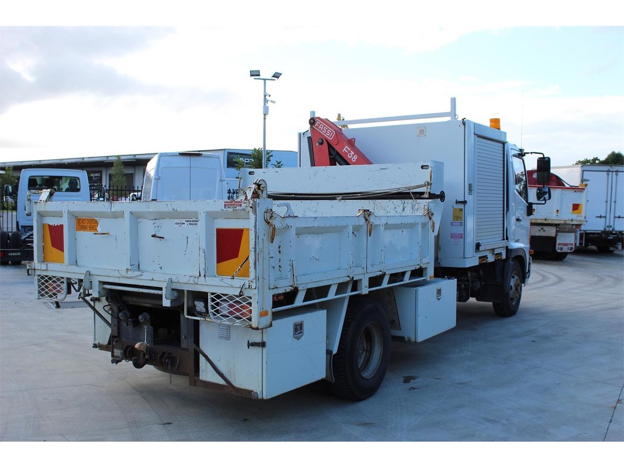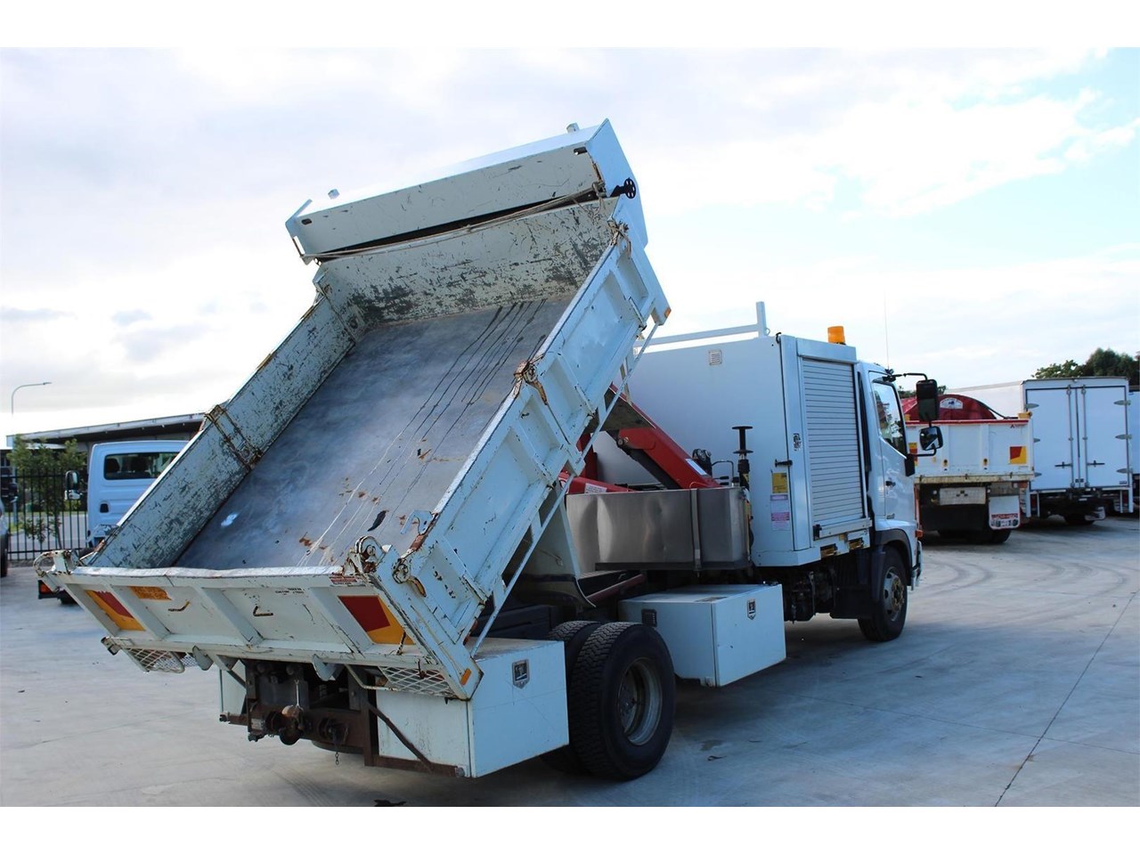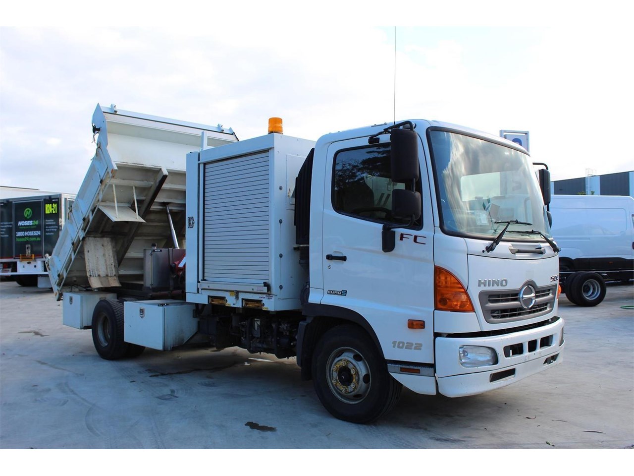 Ex-Council 2014 Hino FC1022 service tipper body with Crane