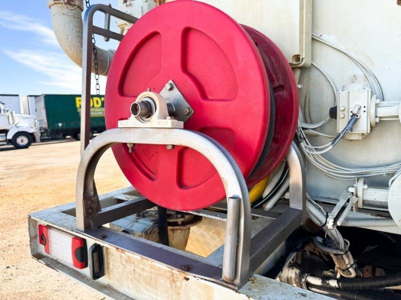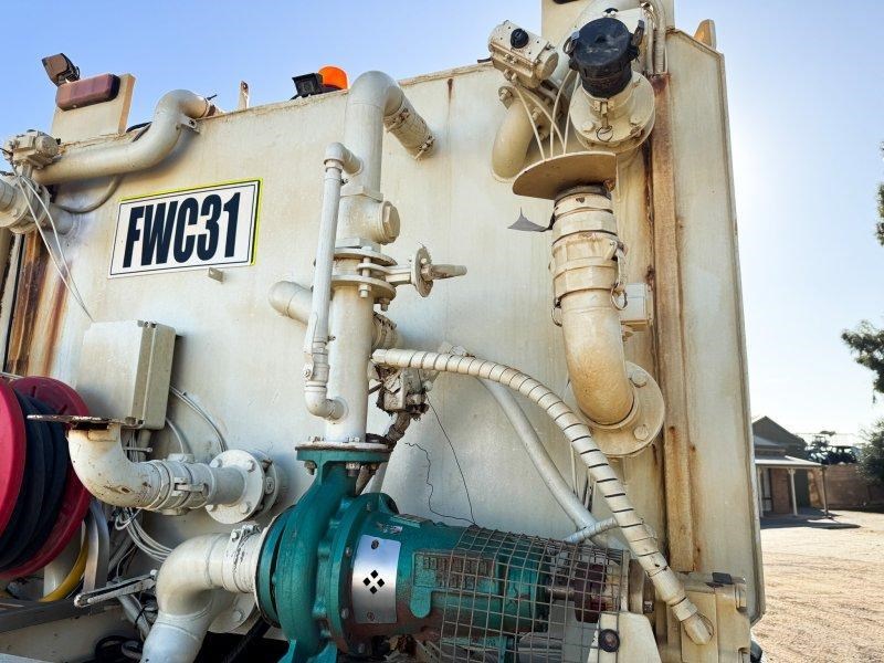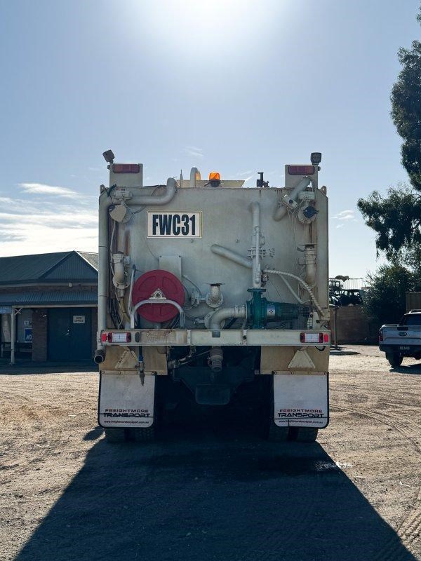 Well-equipped Hino FM water tanker with sprayers front and rear, automatic transmission, and safety fitout including ROPS. Suited to civil, construction, and mining applications.