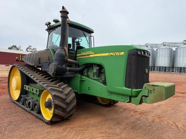 John Deere 9420T Tractor, 425 horsepower, 8610 hours, powershift transmission, 30 inch tracks 95% rubber, 5 remotes, Autofarm Paradigm RTK GPS with base station included (screen needs to be checked out), shedded, good condition, near Surat QLD, includes GST