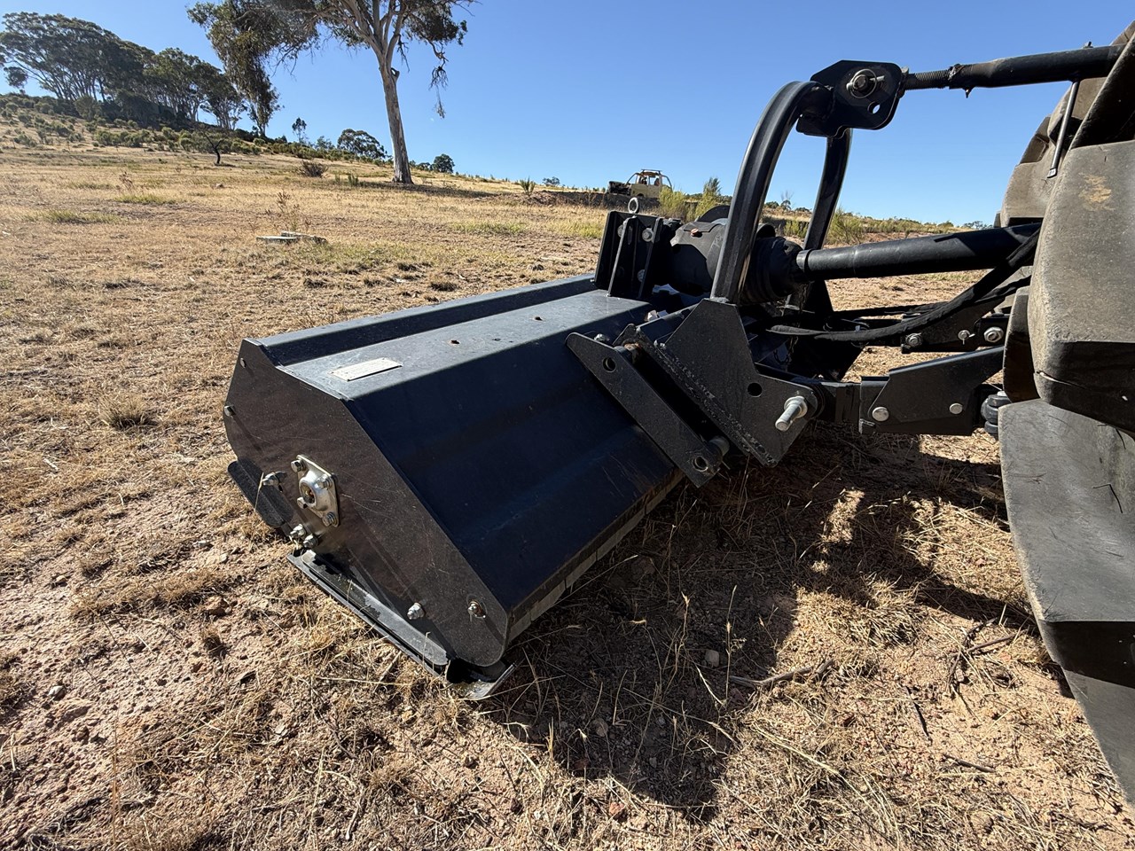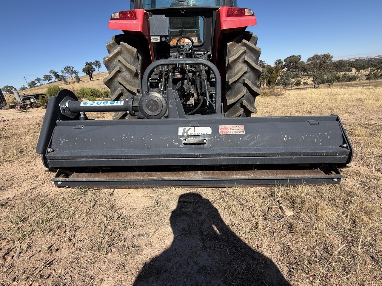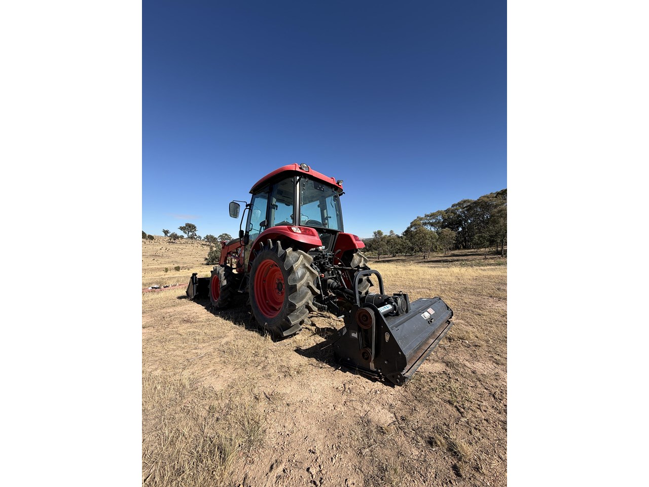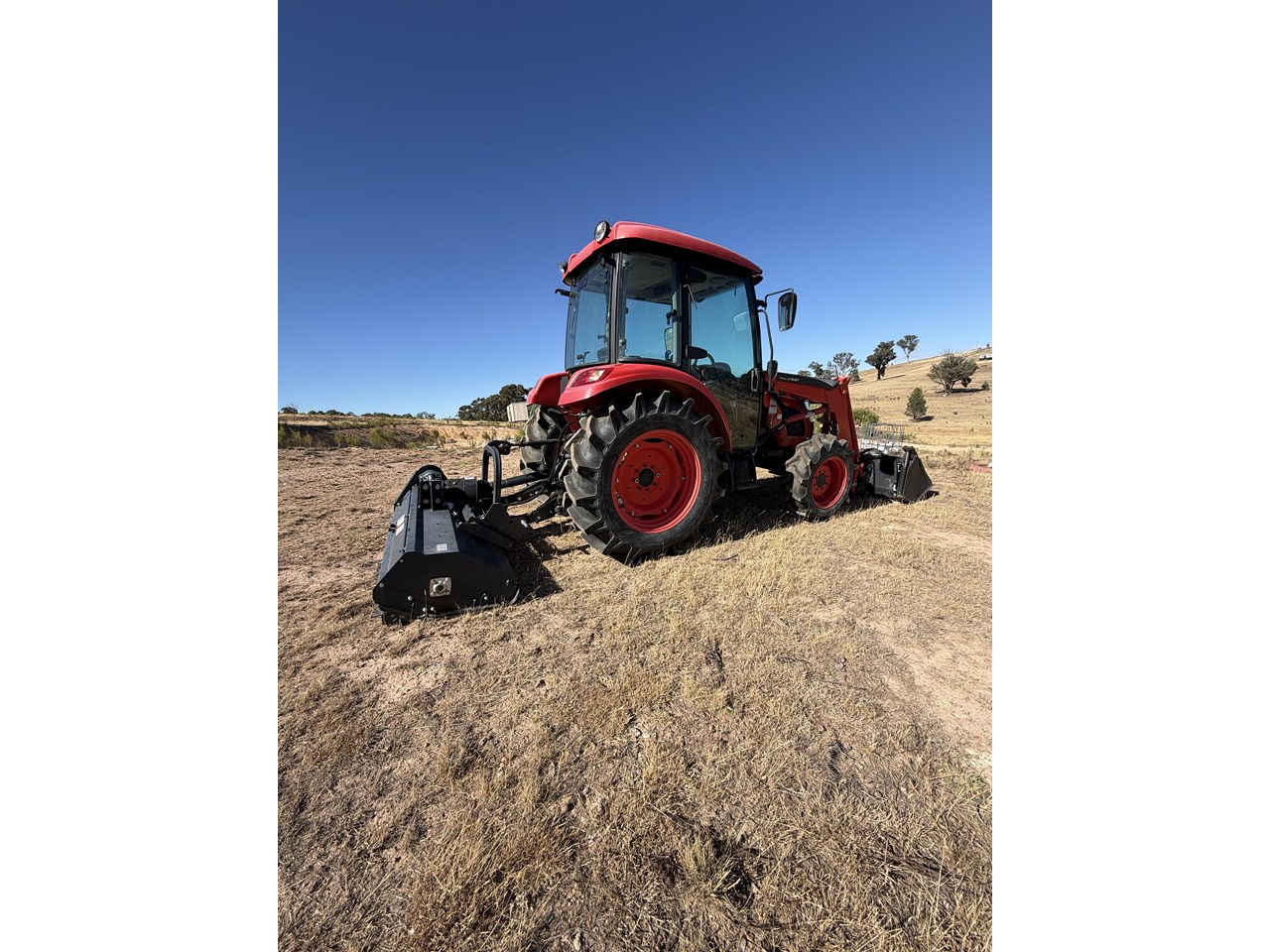 Power shuttle transmission with creeper, 11.2-20 and 14.9-30 tyre package, Standard light package, 3 point linkage, 2 x remotes, 540/540E PTO, air conditioning, UHF, Bluetooth radio, HL601 3 function loader with 4 in 1 loader, complete with a 1865MM Flail mower.