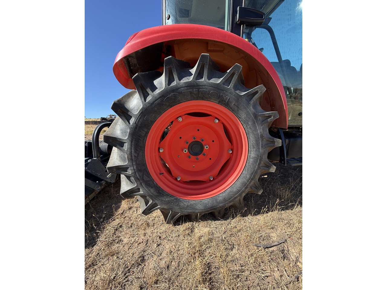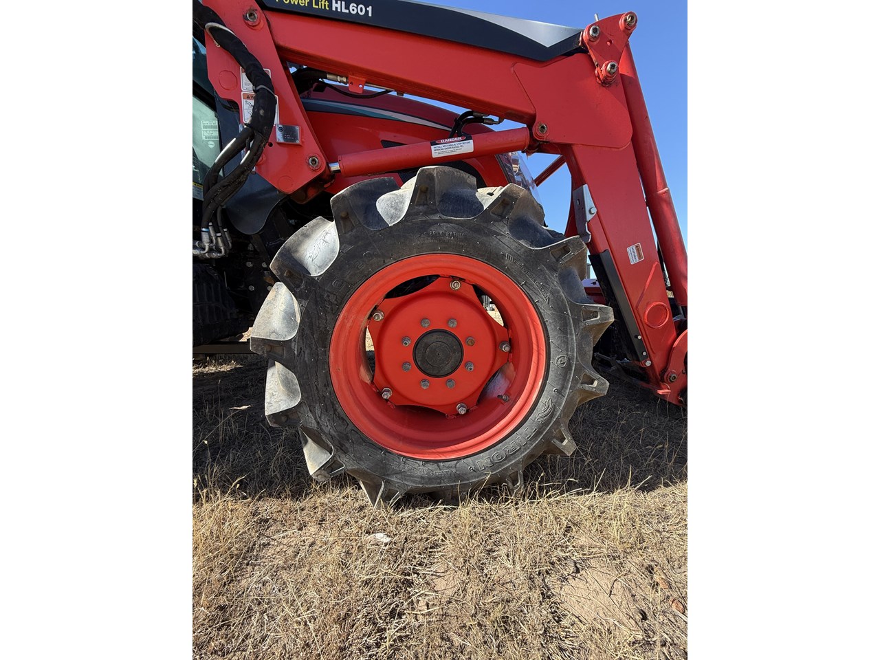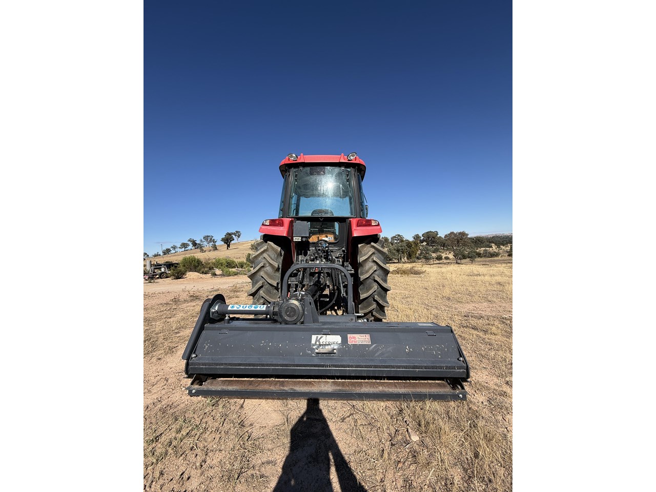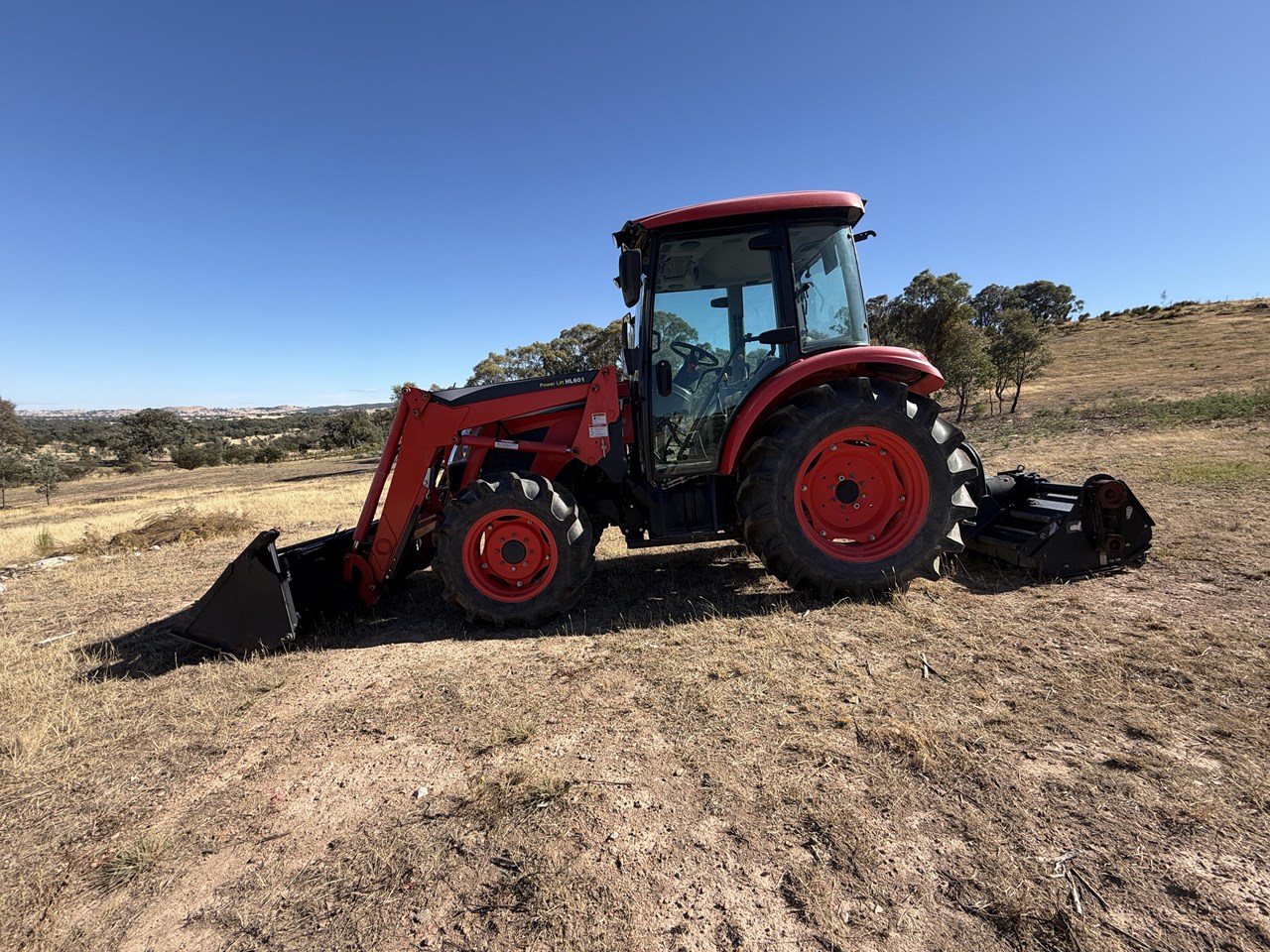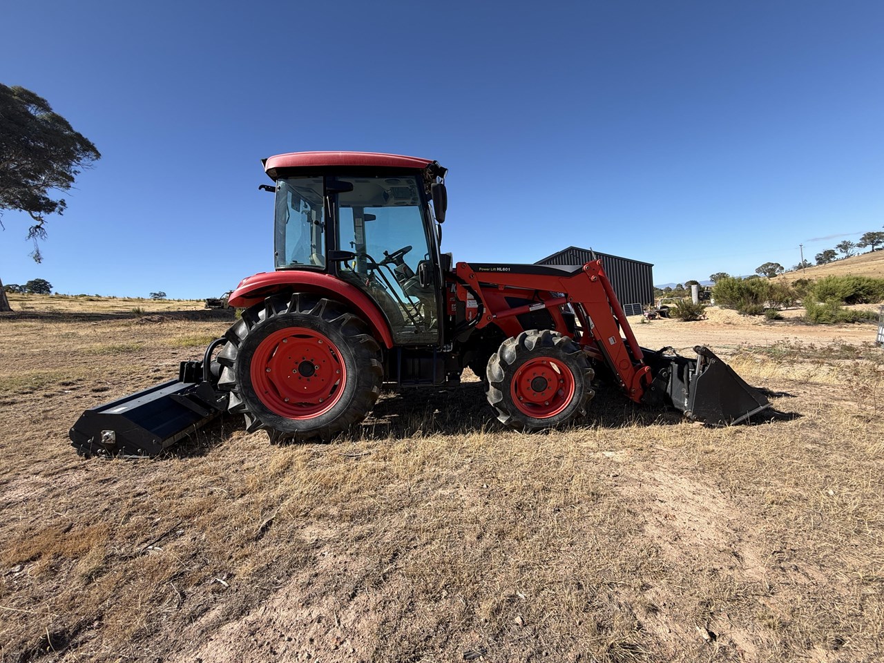 Power shuttle transmission with creeper, 11.2-20 and 14.9-30 tyre package, Standard light package, 3 point linkage, 2 x remotes, 540/540E PTO, air conditioning, UHF, Bluetooth radio, HL601 3 function loader with 4 in 1 loader, complete with a 1865MM Flail mower.