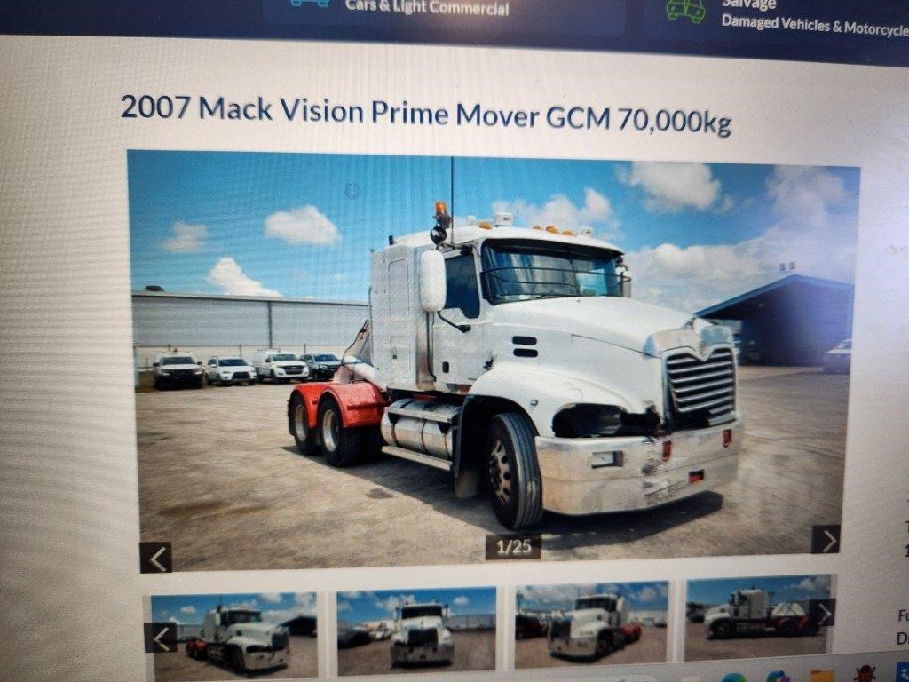 2007 Mack Vision truck with 6 cyl turbo diesel 470hp diesel motor and 12 speed auto gearbox. Wrecking Now!