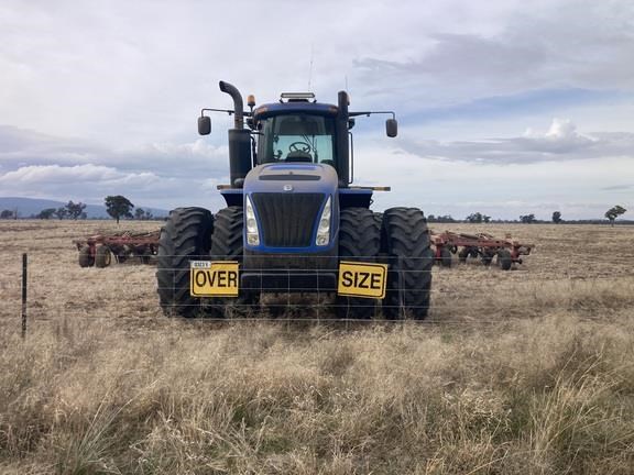2011 NEW HOLLAND T9.505 457 ENGINE HP 7133 ENGINE HOURS 16 SPEED POWERSHIFT TRANSMISSION 620/70R42 DUALS 1000 RPM PTO FRONT & REAR WHEEL WEIGHTS REAR SUITCASE WEIGHTS LOCATED @ TEMORA