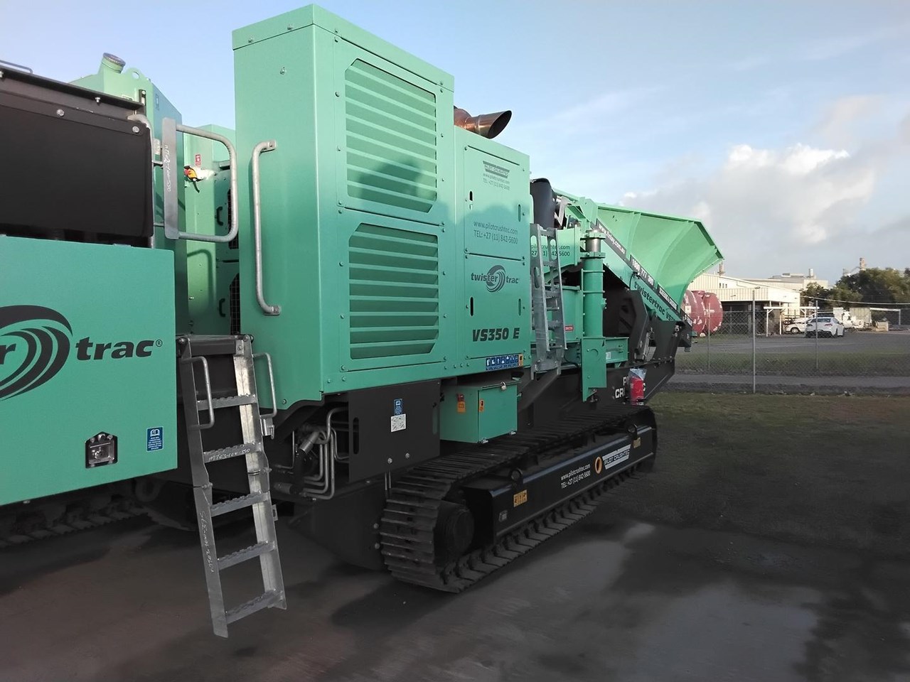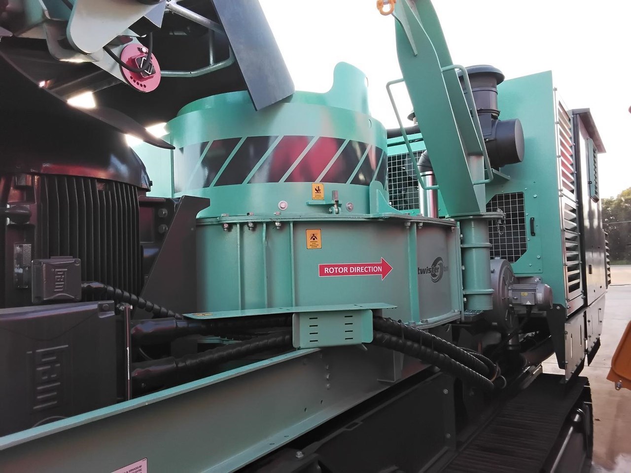The TwisterTrac VS350E is a track-mounted, self-driven, feeding, crushing and stockpiling machine for tertiary and quaternary crushing applications. It is fitted with a purpose designed Twister VS350E vertical shaft impact (VSI) crusher. It is a versatile crusher primarily used for production of fines for crusher sand and base course, for the shaping of aggregates to produce quality cubical shaped material and for the reduction of feed material for further milling processes.