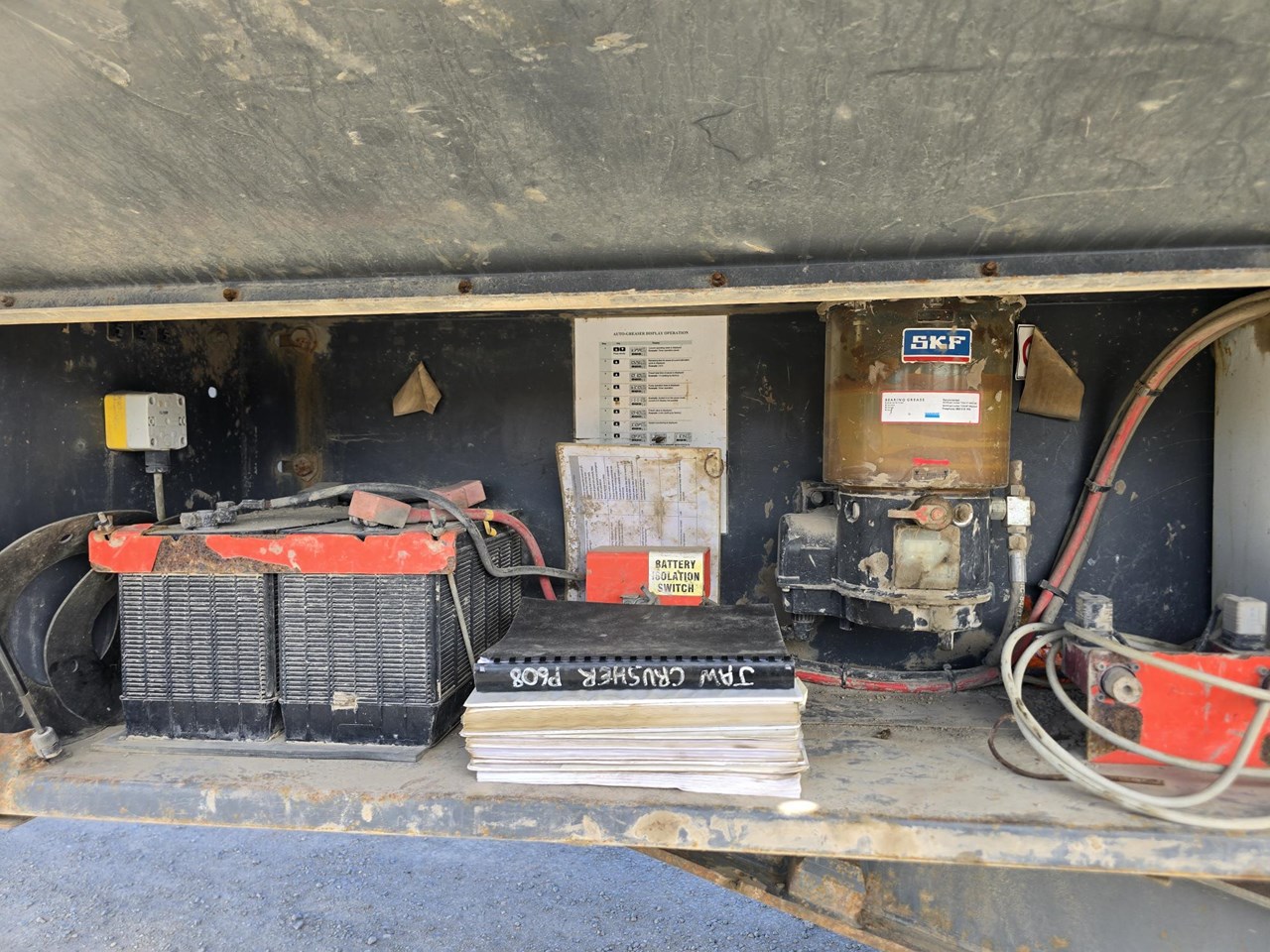 2011 Model 11100 Hrs Showing. 1100 mm x 4400 mm Vibratory Grizzly Feeder. 1100 mm x 800 mm Jaw Crusher. 750 mm Wide Fines Discharge Conveyor. 1000 mm Wide End Discharge Conveyor. 1900 mm x 750 mm Cross Belt Magnet. Cable Remote Control. Auto Lube. Cat C9 6 Cylinder Diesel Engine. Hydraulic Levelling.