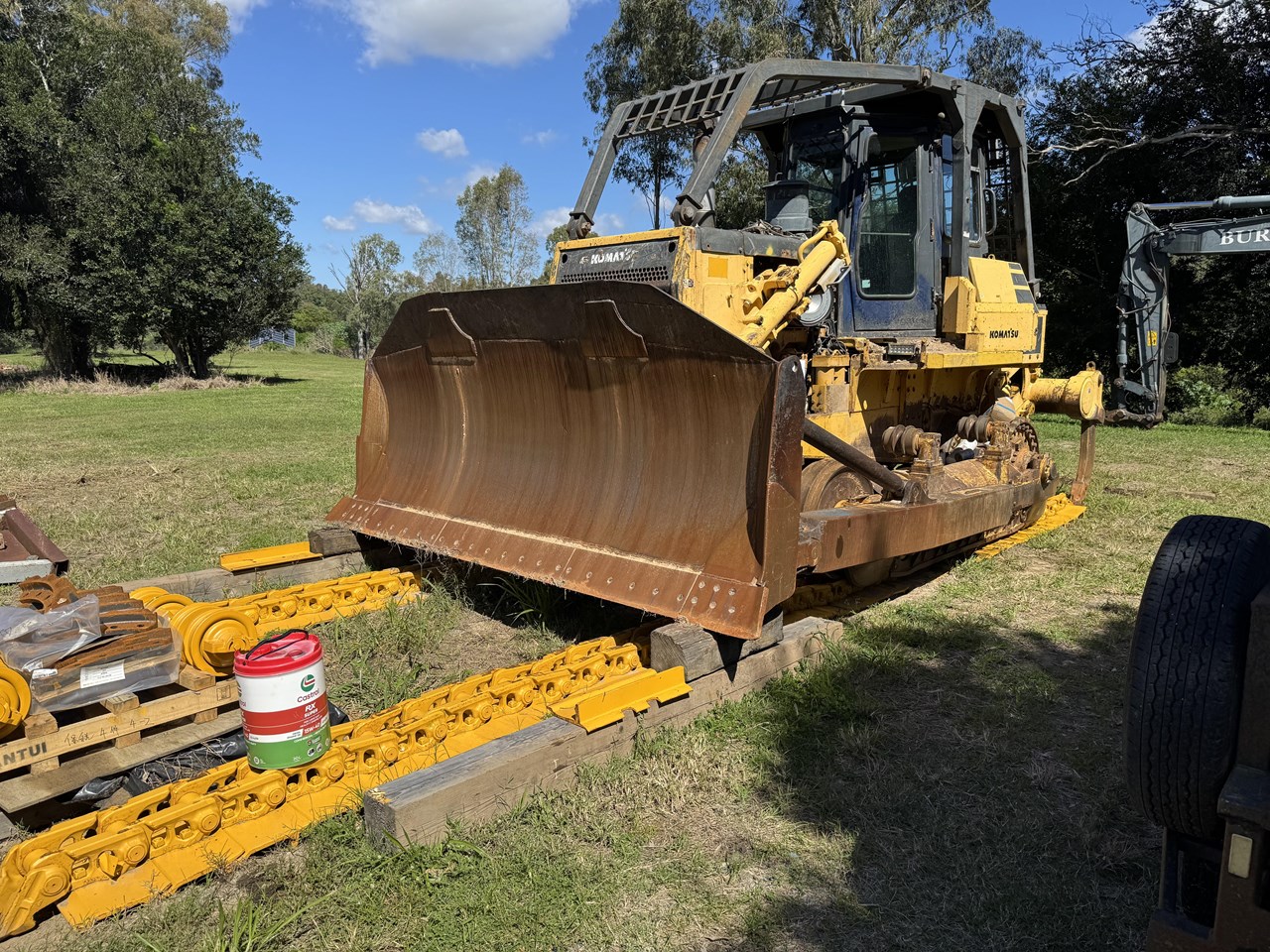 Shantui SD22F - 26 tonne (approximately with forestry) bulldozer with Cummins (235hp) engine, powershift transmission, straight tilt blade, rear rippers, engine side guards, ROPS air-conditioned cabin with forestry protection, radio, UHF radio, and suspension seat. Fully serviced and with new chains, sprockets, and rollers.
