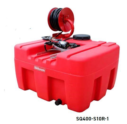 - 400L Capacity UV Stabilised Polytuff tank with calibrated fill markings and drain outlet. Internal Baffle to reduce liquid surge when travelling. Bottom inserts for permanent fixing or recesses in the top for ratchet straps. Carry points at each side of the tank. 3 stage Filtration.