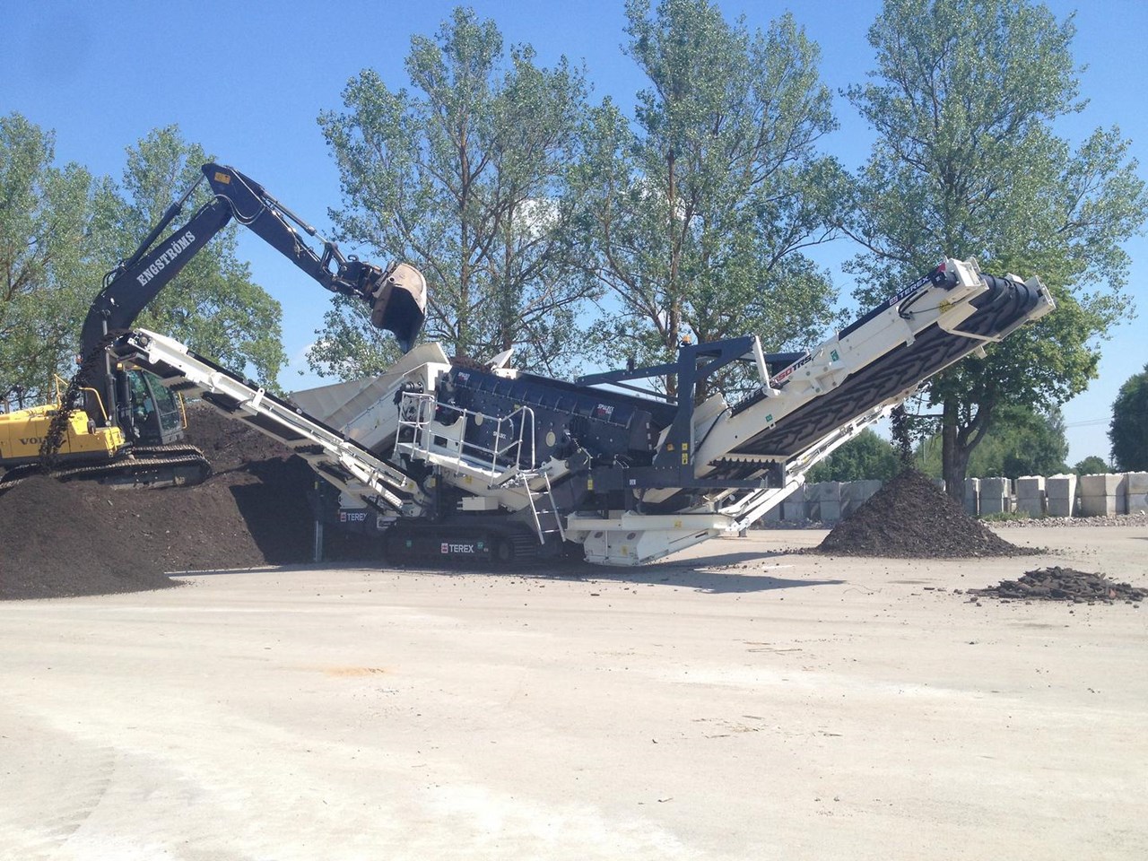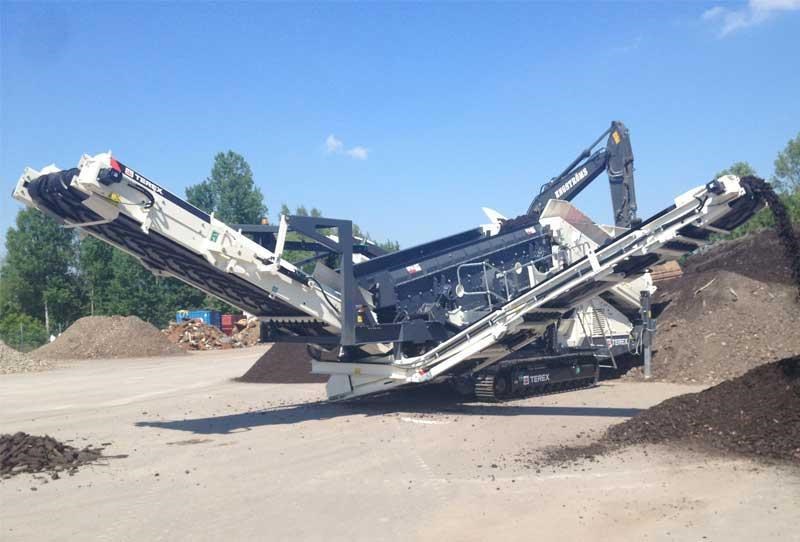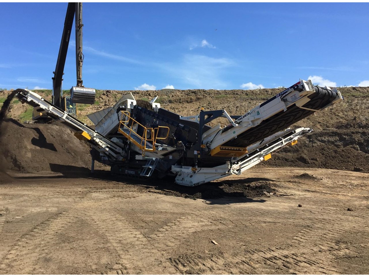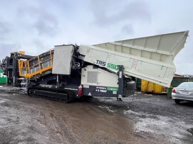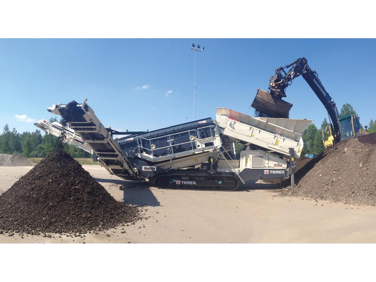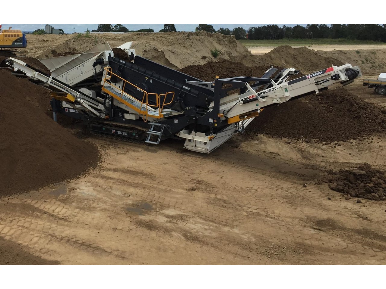 The TRS 550 Recycling Screen is a highly efficient and versatile mobile screening machine, with a specialist screenbox from German manufacturer Spaleck. The proven Terex platform, with standard features such as a steel apron feeder, combined with state of the art 3D top deck screening panels and a highly aggressive flip-flow bottom deck allow the TRS 550 to perform in the most difficult of applications.