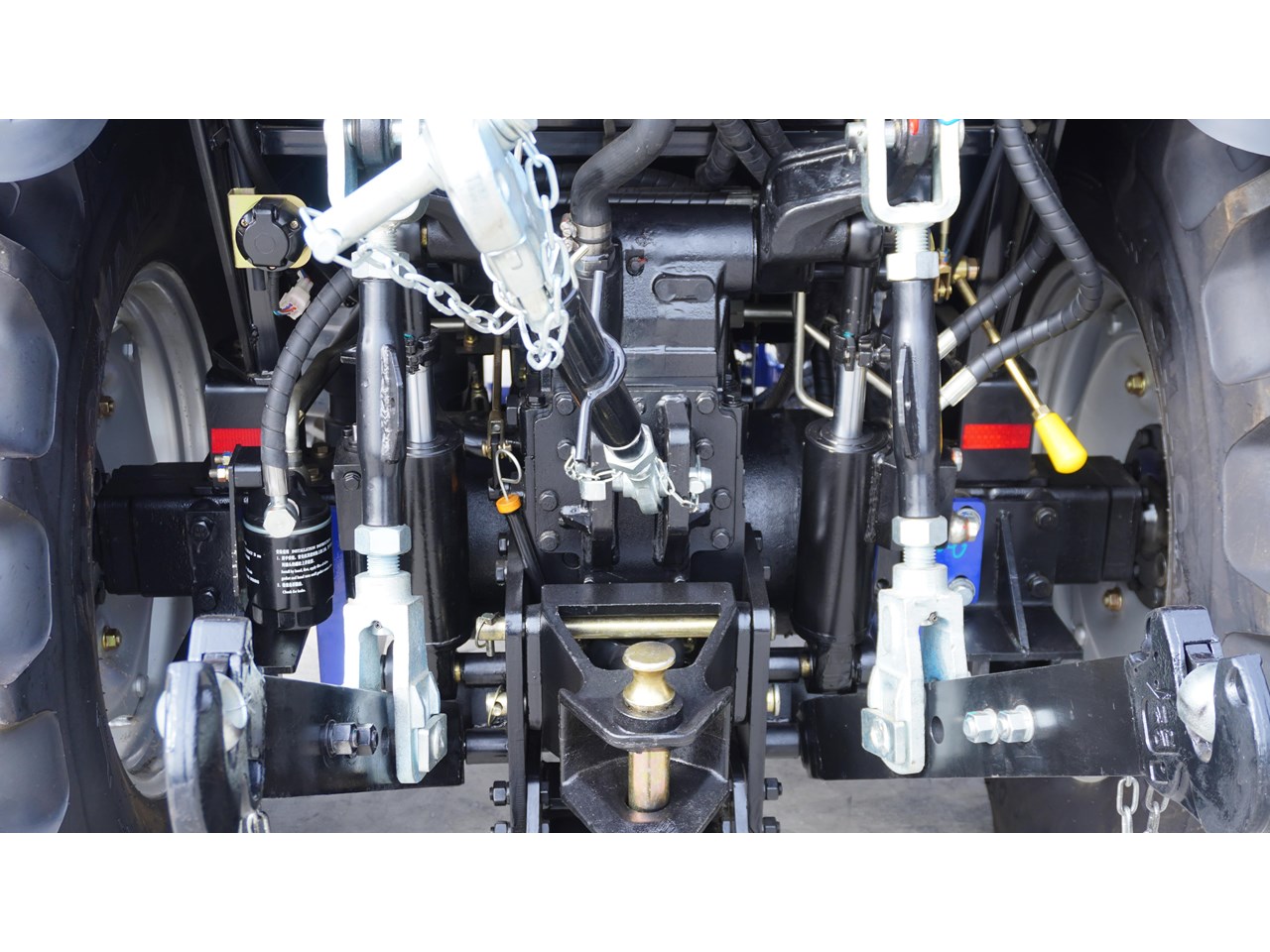 More front loader lifting capacity and tractor pulling capacity. It takes a certain amount of weight for a tractor to transfer one HP of energy from the engine to the ground. If you have too little weight, your purchased HP isn't performing optimally. We designed a balanced tractor with heavy front and rear weight to achieve effective grip in the field, and in return, our tractor has more front-end lifting capacity and tractor pulling capacity.