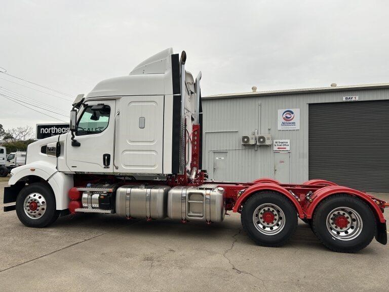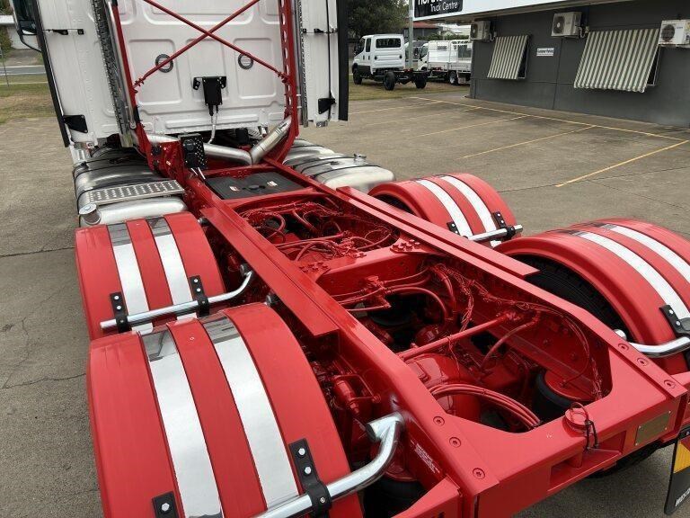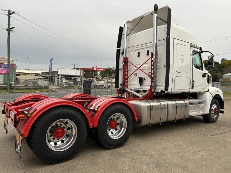 48X with 48inch Raised roof sleeper, Detroit DD16 600hp @2050lb/ft, Detroit DT 12-OVX-2050 12 speed transmission, Meritor RT46-160 GP diffs with crosslocks , Ally wheels, Fixed Just turntable, alloy walk plate, plastic Drive guards and UHF radio